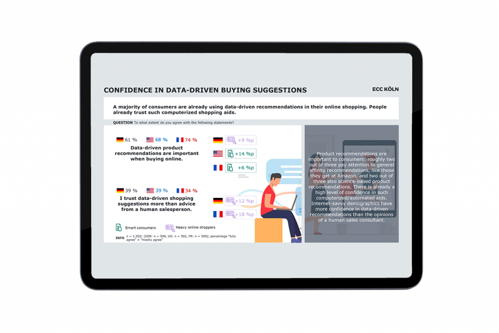 This year, we commissioned IFH Köln to survey 1500+ consumers in the United States, France and Germany on their attitudes toward technology-based product recommendations. We used the insights we gathered to create our study with: